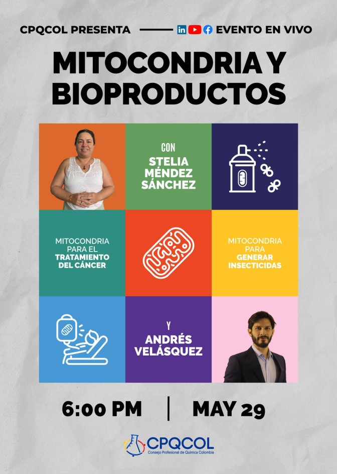 Hablemos de la mitocondria y su conexión con el desarrollo de bioproductos con Stelia Méndez de la UIS - 29 de mayo - 6PM.